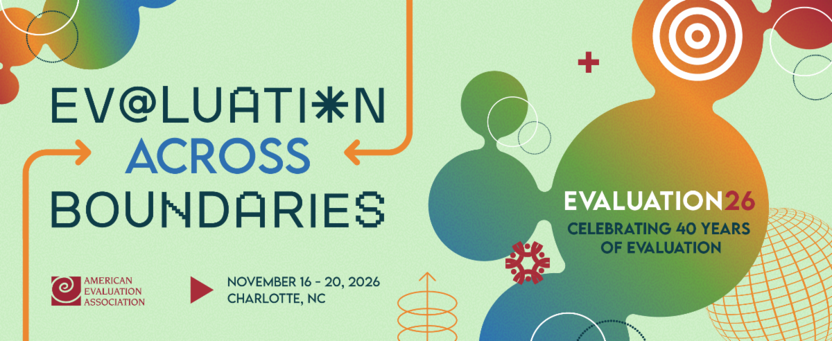 Be part of a defining moment for the field at Evaluation 2026, taking place November 16–20 in Charlotte, NC. Centered on Evaluation Across Boundaries, this year’s conference explores how evaluators are connecting across disciplines, sectors, cultures, and methodologies to drive meaningful change. As we celebrate 40 years of AEA, join a global community committed to learning, innovation, and expanding what’s possible—together. Registration opens in July, and the call for session proposals is open now through Friday, May 1.